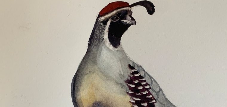 The Sonoran Southwest is home to a variety of quails. We will discuss and observe these lovely birds. Using simple techniques, you will learn to break your subject down into simple shapes and draw more accurately. Then we will use multiple layers of color with watercolors to add vibrancy and sparkle to our drawings.